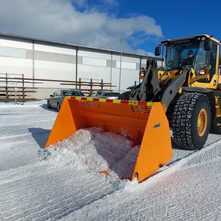 The ice-removing bucket speeds up and improves the removal of ice in areas with heavy traffic and at the same time reduces the number of working machines in the same area which improves traffic safety.