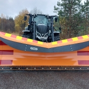 Evo2 ploughs have a new thrust frame, the geometry of which is designed so that the blade angle does not change much when the floating position changes. The floating bar is now enough wide for the driver to see it from the cab and able to keep the float in the optimal position, without accidentally pressing or lightening the plough. The float distance is now bigger, 220mm. Thanks to the new thrust frame, the push point is lower and the turning cylinders are stronger to keep the plough at the desired angle. The upper visor of the wing has now been made higher and the material is reinforced rubber. The rubber visor now extends the entire length of the plough and reduces the entire length and reduces the amount of snow on the windscreen. Based on both our own testing and feedback from test customers, it can be stated that these features together make the new Evo2 model clearly more stable and easier to use than its predecessor.