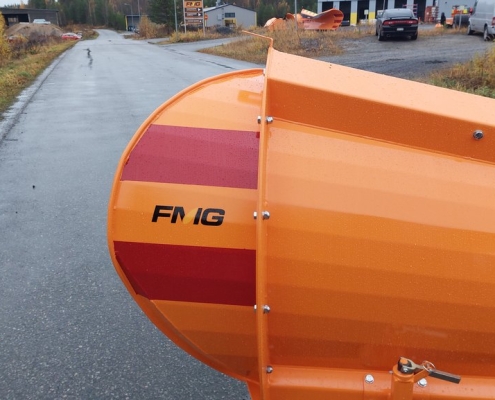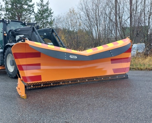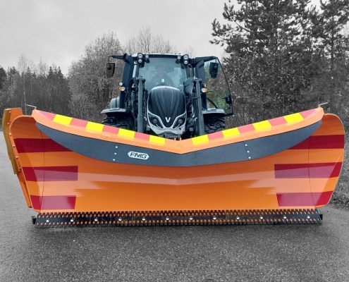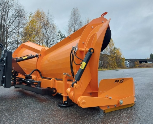 FMG-plogar är konstruerade för professionellt bruk och har en robust konstruktion. Plogen svängs med hjälp av två hydraulcylindrar, vilket ger en svängvinkel på 41° åt vänster och 45° åt höger. Bladvinkeln i förhållande till vägbanan är 40°, vilket säkerställer effektiv snöförflyttning.